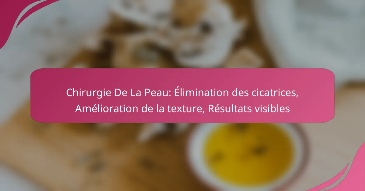La chirurgie de la peau offre des solutions efficaces pour éliminer les cicatrices et améliorer la texture cutanée. Grâce à des techniques variées, les patients peuvent bénéficier de résultats visibles, tels qu’une peau plus lisse et revitalisée. Chaque méthode est adaptée aux besoins spécifiques, garantissant ainsi une approche personnalisée pour un aspect rajeuni.