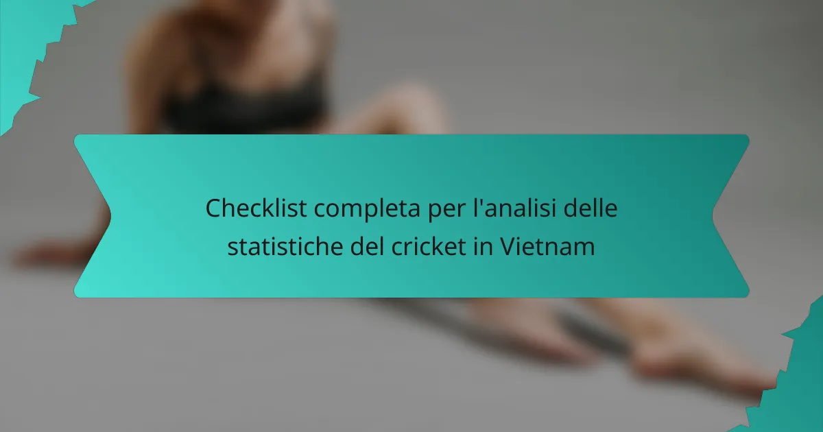 Analizzare le statistiche del cricket in Vietnam richiede un focus su metriche chiave come i risultati delle partite, le prestazioni dei giocatori e le classifiche delle squadre. Utilizzando fonti affidabili e strumenti analitici avanzati, gli appassionati possono ottenere preziose intuizioni sul gioco. Questa checklist completa ti guiderà attraverso gli aspetti essenziali della raccolta e analisi dei dati per migliorare la tua comprensione del cricket nella regione.